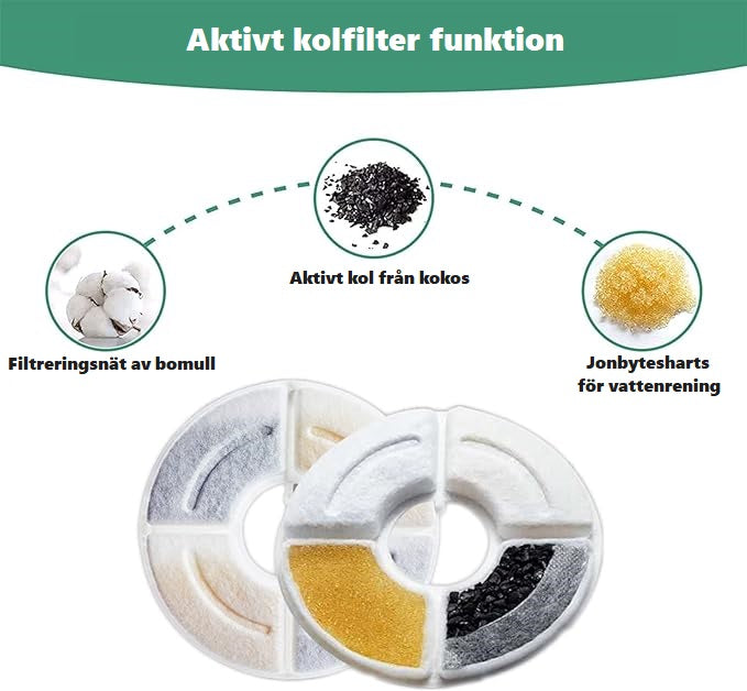 Kolfiter till vattenfontän för katt.