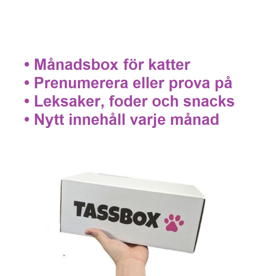 Skriv till oss på info@tassia.se om du vill byta ut något i din TassBox till en likvärdig produkt, till exempel ett foder eller en leksak. Du kan lämna en anteckning i varukorgen om din katt har allergi.