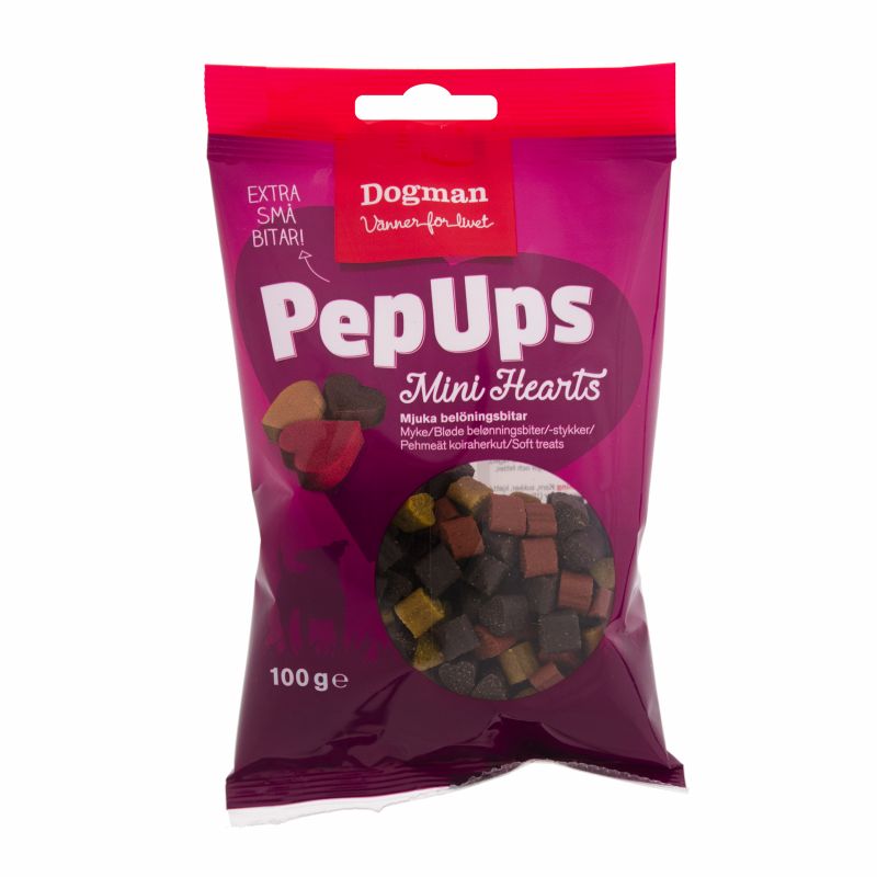 Små, bløde belønningsstykker med en lækker smag af kylling, okse eller lam. Hundegodbidden er perfekt til træning eller gåture! Uden tilsat sukker. Leveres i en praktisk genlukkelig pakke. Gives som slik sammen med en afbalanceret kost.