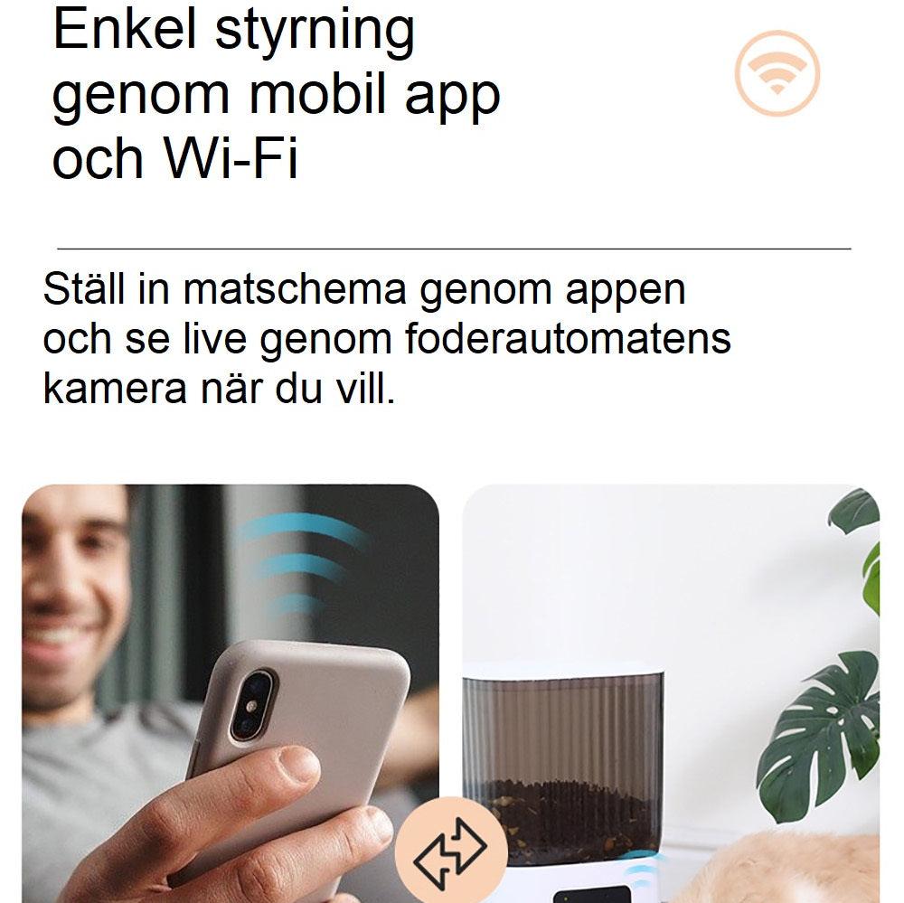 Sisäänrakennettu kamera tukee yönäköä ja liiketunnistusta, mikä tarkoittaa Näet kissasi syömisen reaaliajassa matkapuhelimellasi. Sisäänrakennetun ääniominaisuuden avulla voit puhua kissoillesi sovelluksen kautta, mikä voi auttaa rauhoittamaan niitä ja luomaan läsnäolon tunteen, vaikka et olisi kotona.