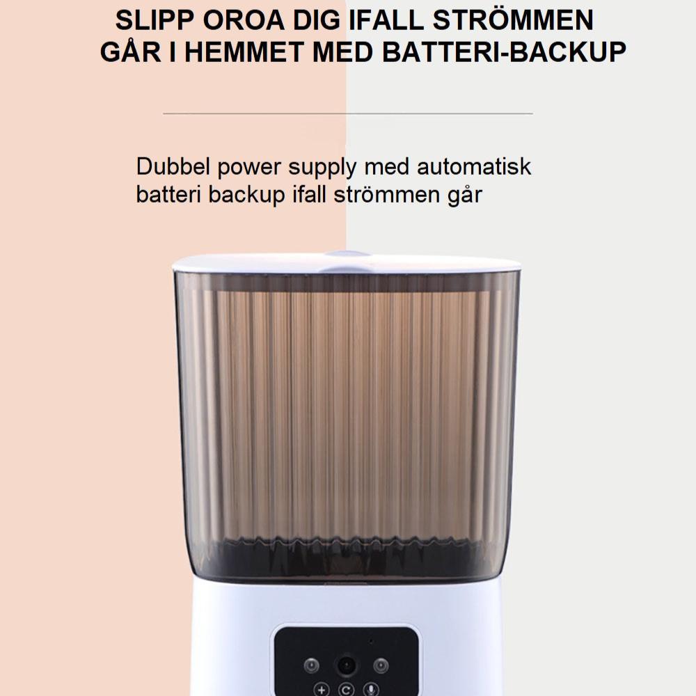 Syöttölaite on varustettu teräväpiirtokamera, mikrofoni, kaiuttimet ja WiFi-yhteys. Siinä on myös akkutuki (3 AA-paristoa, eivät sisälly) ja mukana 5V2A USB-virtajohto, jotta kissasi saavat ruokaa, vaikka virta katkeaa.