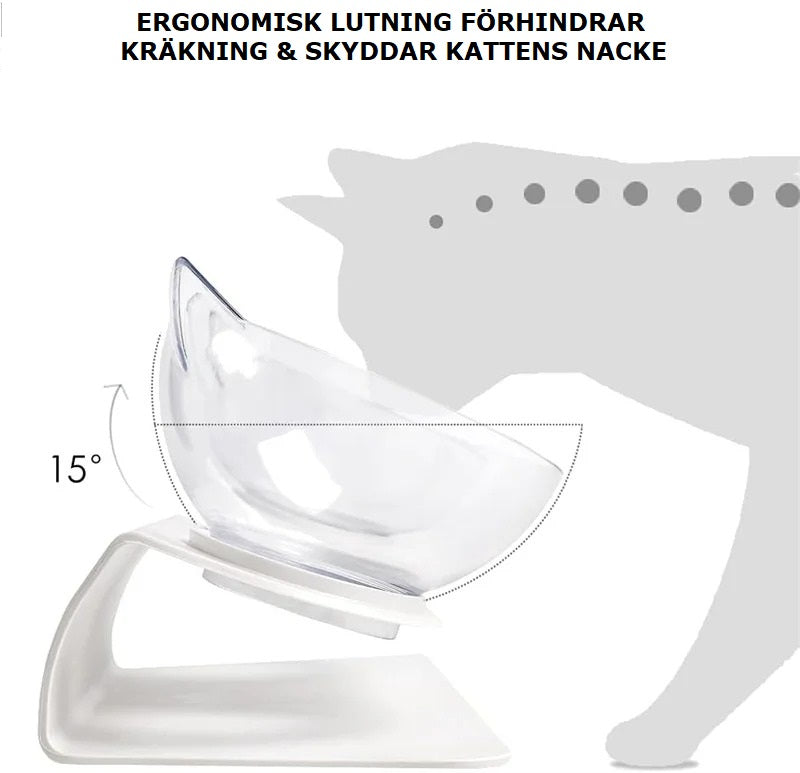 Anna rakkaalle kissallesi maailmanluokan ruokakulho tällä ainutlaatuisella tuotteella, jonka kulho on kissan pään muotoinen. Tämä ainutlaatuinen ruokakulho on suunniteltu kissasi hyvinvointia silmällä pitäen ja se muuttaa kissasi ruokailukokemuksen. Se, mikä todella erottaa tämän ruokakulhon muista, on kulhotelineen älykäs muotoilu. Jalustassa on 15 asteen kaltevuus, joka on hellävarainen kissan niskaan, selkään ja vatsaan ruokailun aikana. Tämä estää rasitusta ja edistää kunnollista ruoansulatusta ja mukavaa ruokailuasentoa kissallesi.