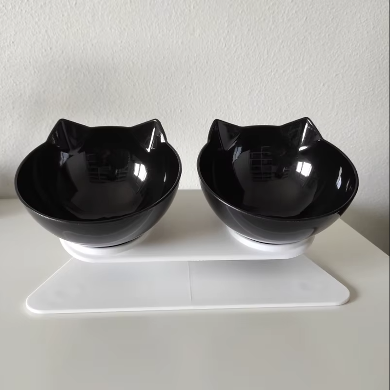 Ge din älskade katt en matskål i världsklass med den här unika produkten som har skålen utformad till ett katthuvud. Denna unika matskål är utformad med kattens välbefinnande i åtanke och kommer att förändra din katts matupplevelse. Det som verkligen skiljer den här matskålen är skålställets intelligenta design. Stället har en 15 graders lutning som är skonsam mot kattens nacke, rygg och mage under måltiden. Detta förhindrar belastning och främjar en korrekt matsmältning och en bekväm ät-ställning för din katt.