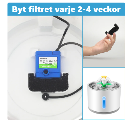 Filtret bör bytas var 4:e vecka för optimal drift.