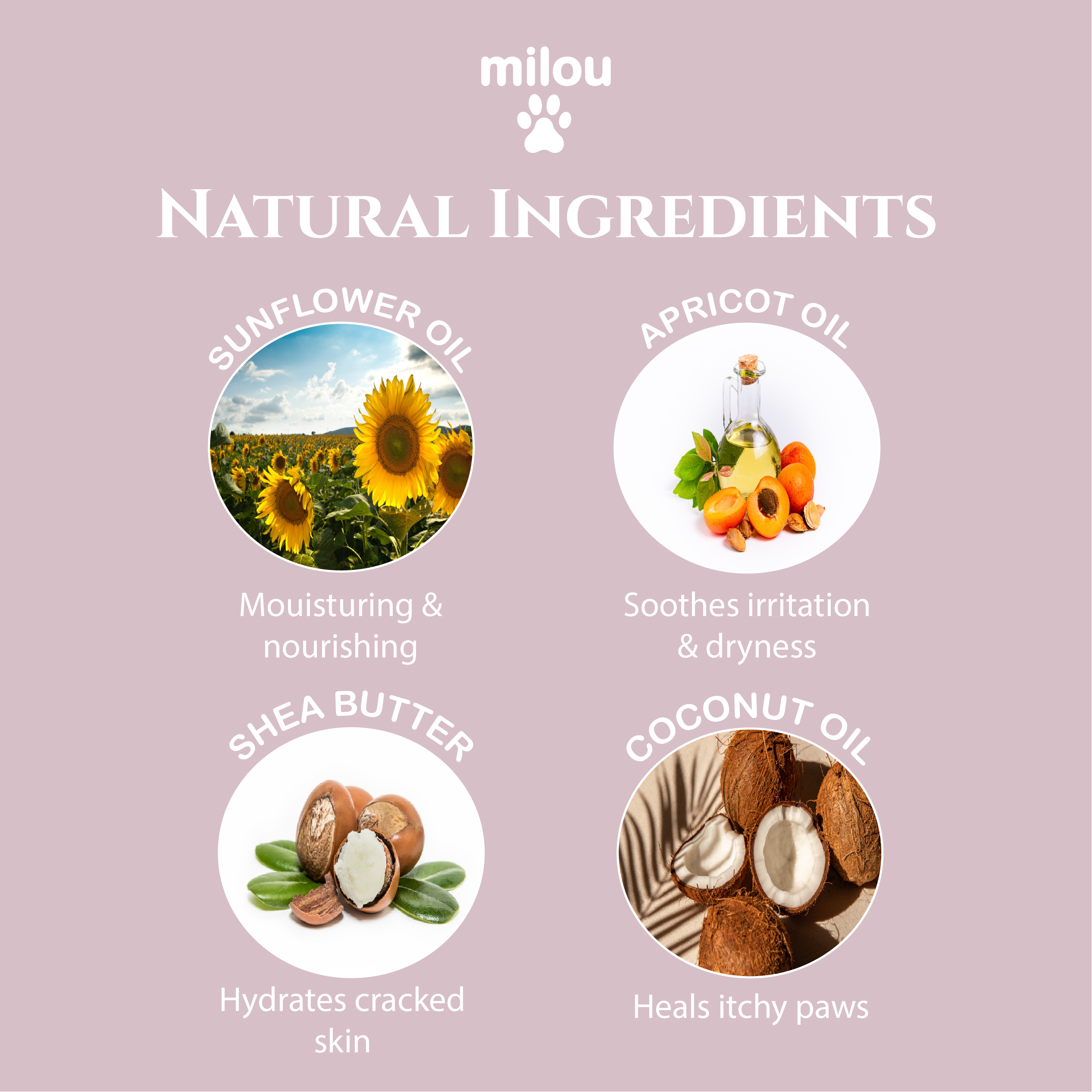 - Innehåller naturliga ingredienser som hjälper till att återfukta och läka kliande och torra tassar och nosar.