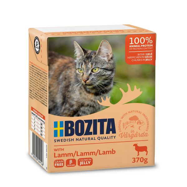 Blötmat för vuxna katter. Bitar i gelé med hög halt av svenskt kött (93%) och smak av lamm. Låg fetthalt, hög smältbarhet och smaklighet. Fri från soja, spannmål & konserveringsmedel. Inget tillsatt socker. ß-glukan stärker immunsystemet. Högt köttinnehåll som ger en naturligt balanserad vitamin- och mineralhalt.