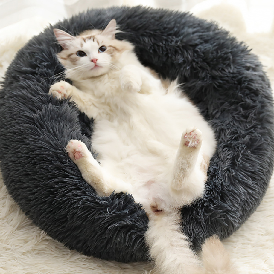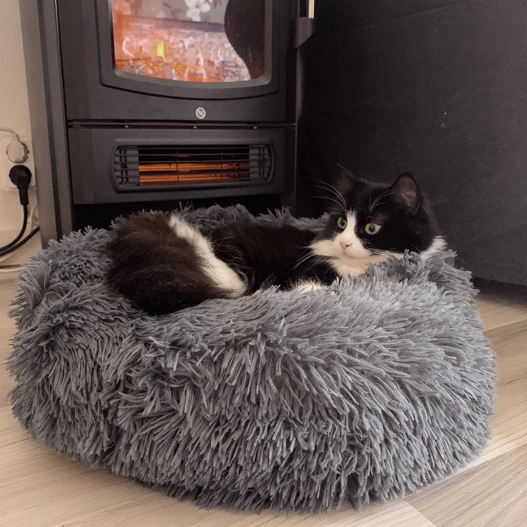 Supermysig husdjursbädd med en diameter på 50 centimeter; en mysig sovplats för katter och små hundar. Design med lite högre kanter gör att din pälskling kan vila huvudet och känna sig trygg. Funkar utmärkt för både mindre hundar och katter. Mjuk, fluffig, mysig.